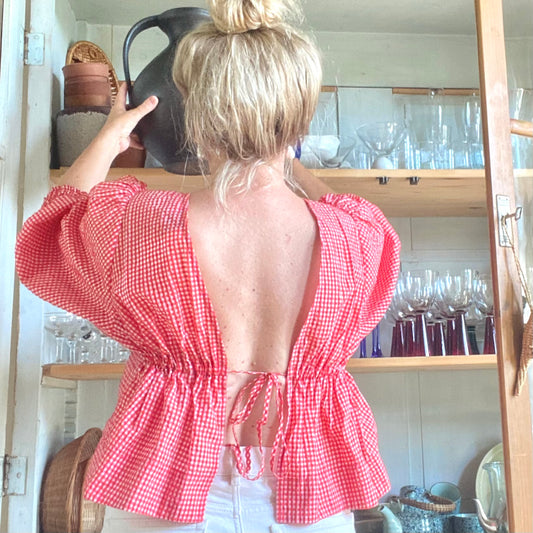 Regular price £85Regular priceUnit price / perSale price £85Ganni Smocked-Sleeve Gingham Seersucker Blouse Size 36