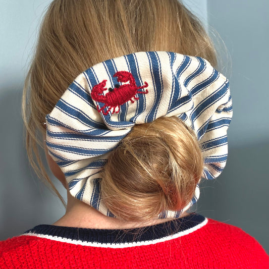 Regular price £18Regular priceUnit price / perSale price £18Stripy Hand-Embroidered Crab Scrunchie