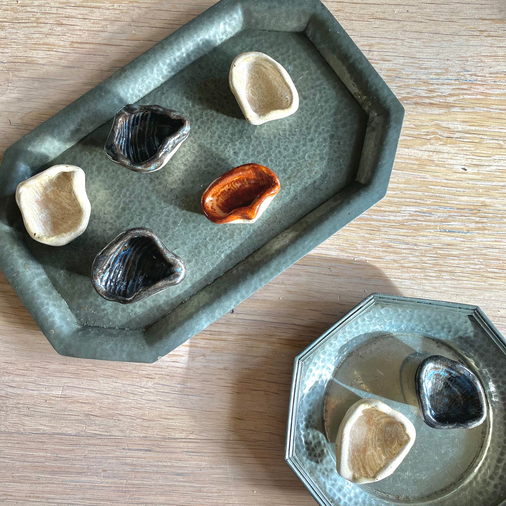 Sunny Sands House handmade ceramic ring dishes, available as a small shell or larger whelk shape in a choice of glazes.