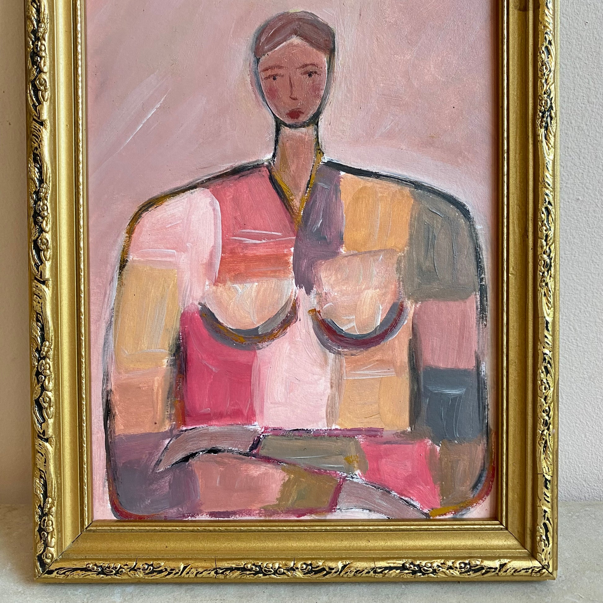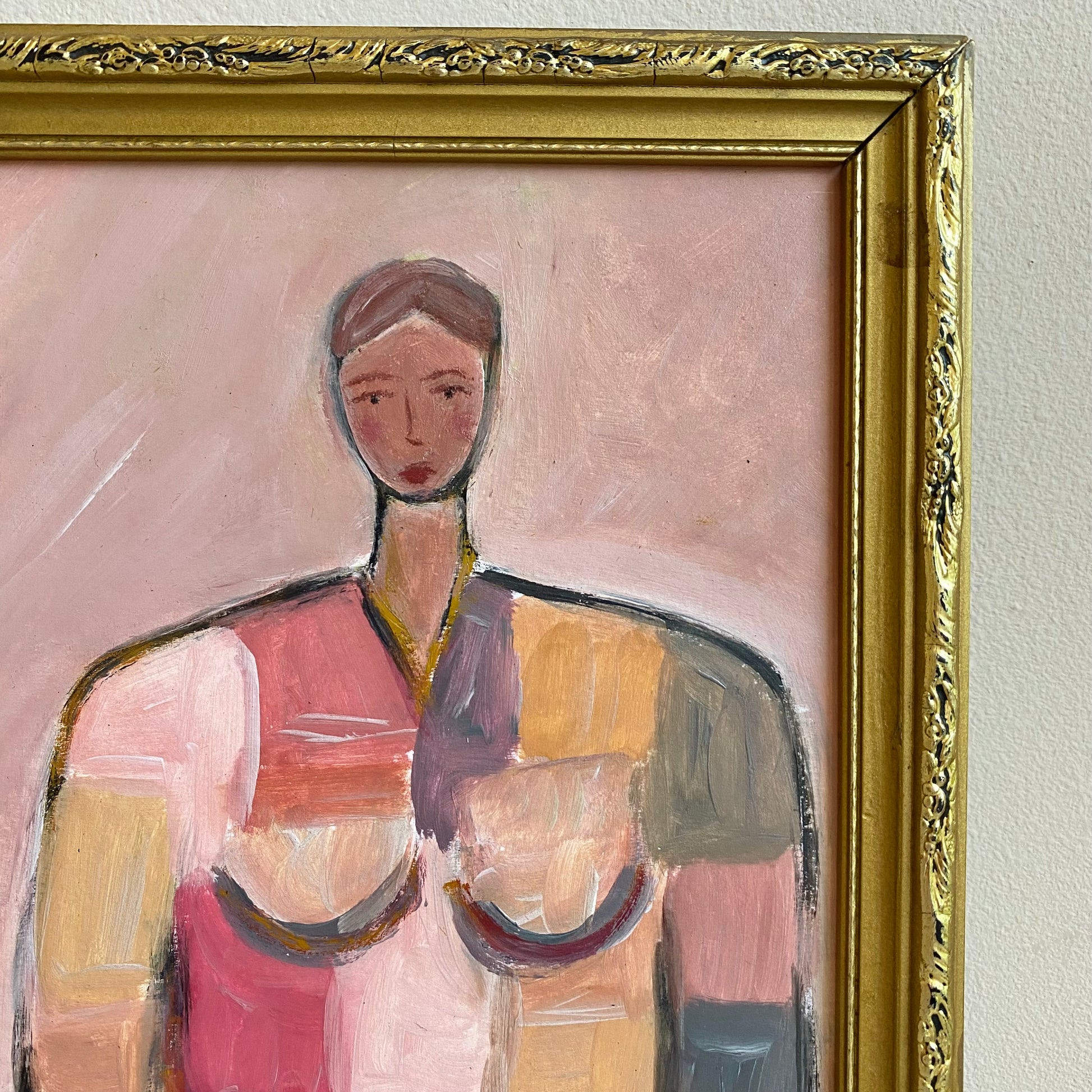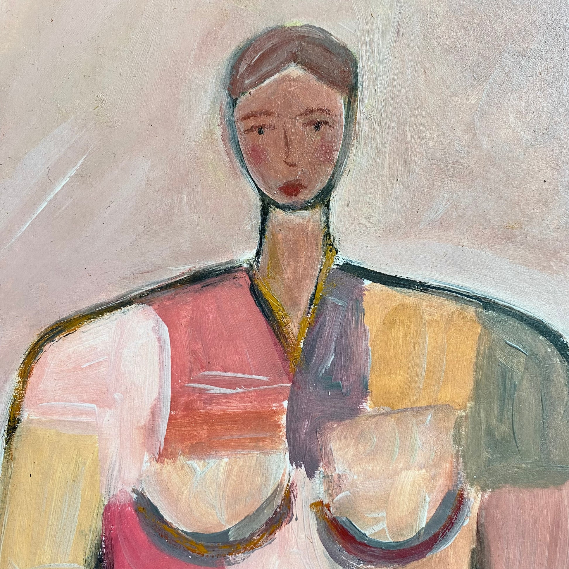 This beautiful oil painting showcases a colourful depiction of a girl in a modernist style.