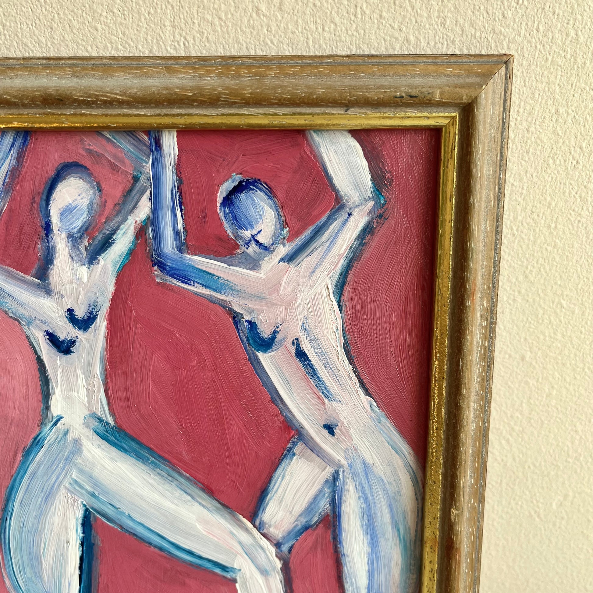 This beautiful oil painting showcases a colourful depiction of an abstract nude motif in a modernist style.