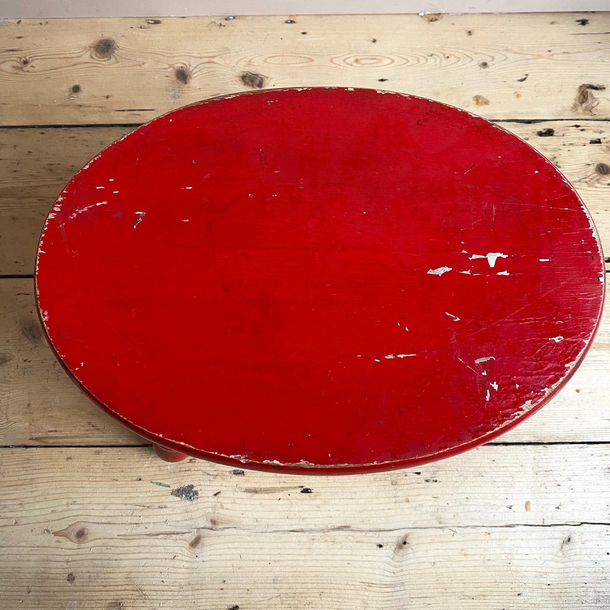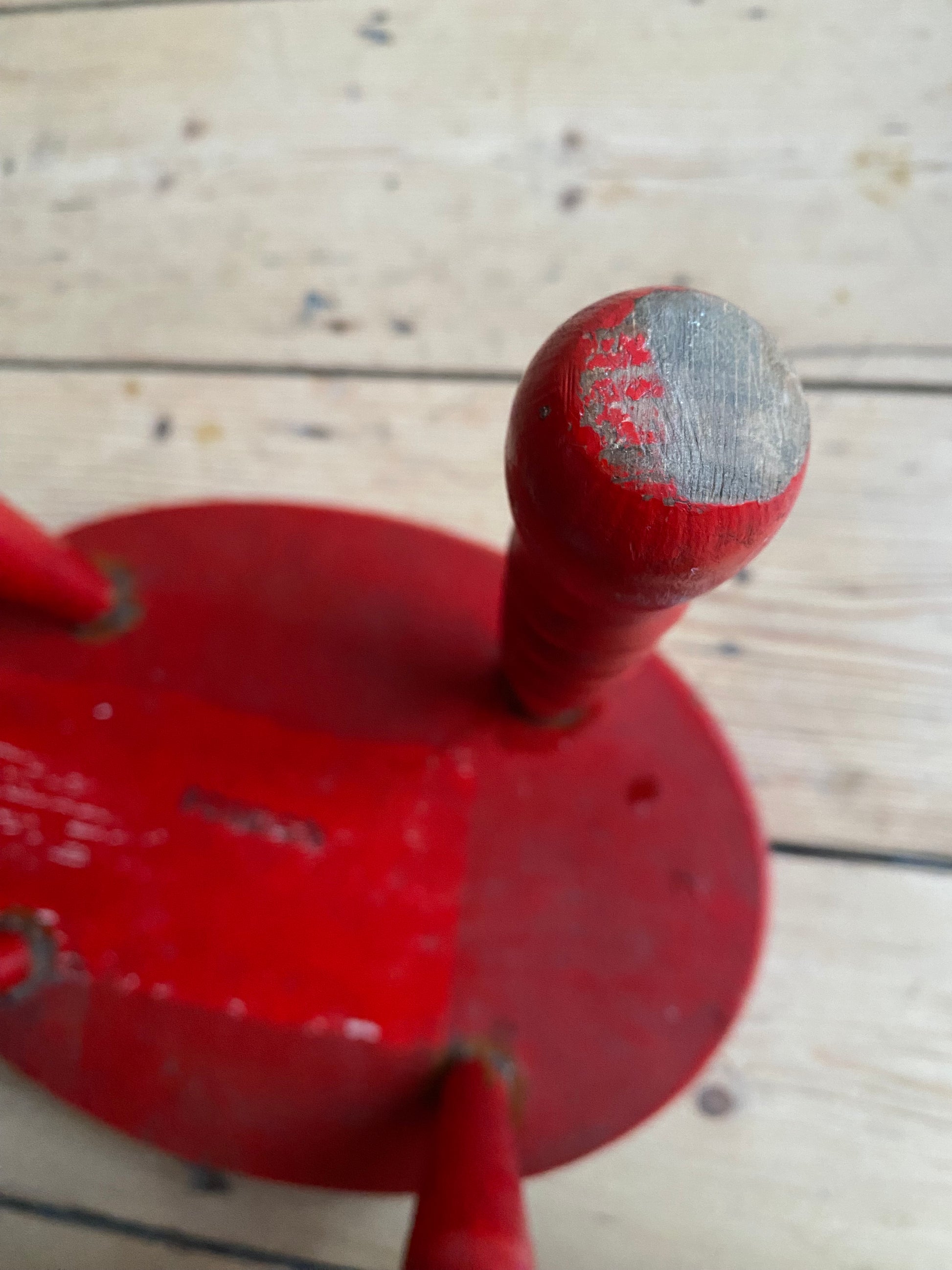 There are visible traces of glue at the leg joints and minor wear on one foot, while the paint shows signs of wear consistent with its age.