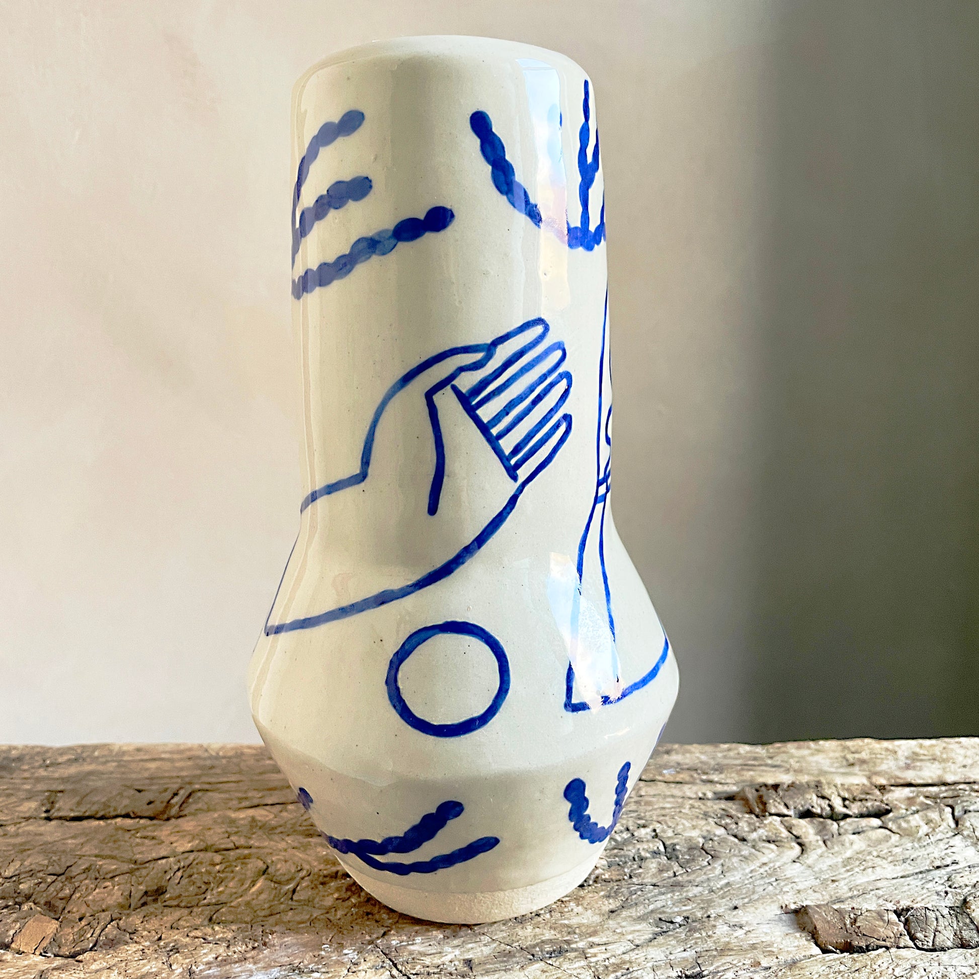 Speckled stoneware vase hand-made and painted by Sophie Alda in her studio in Bristol.