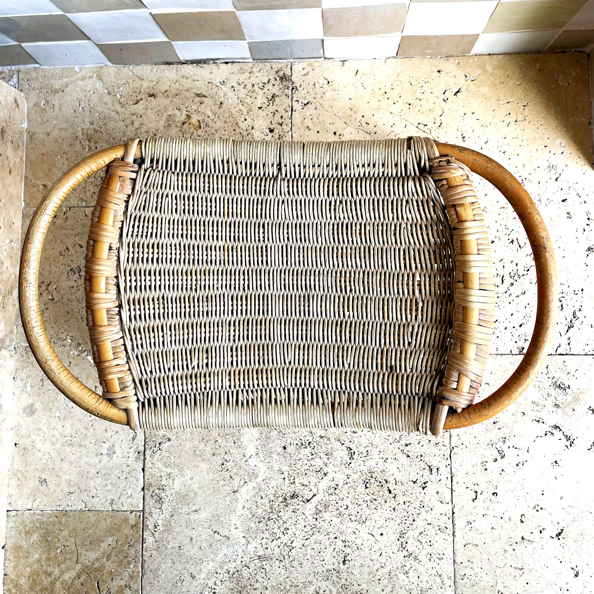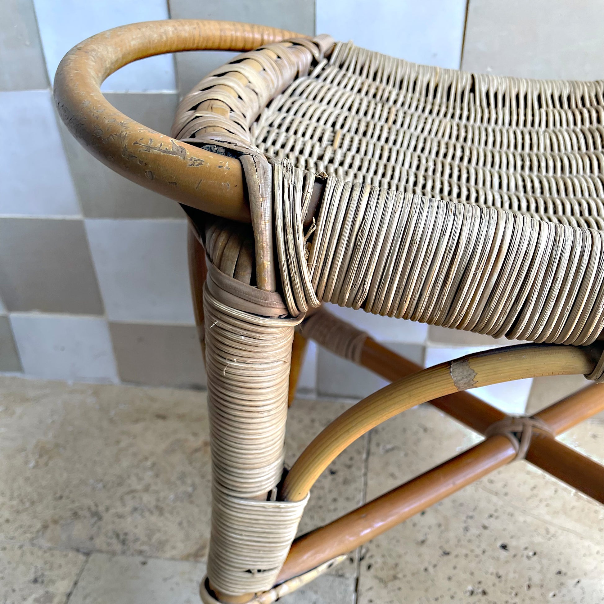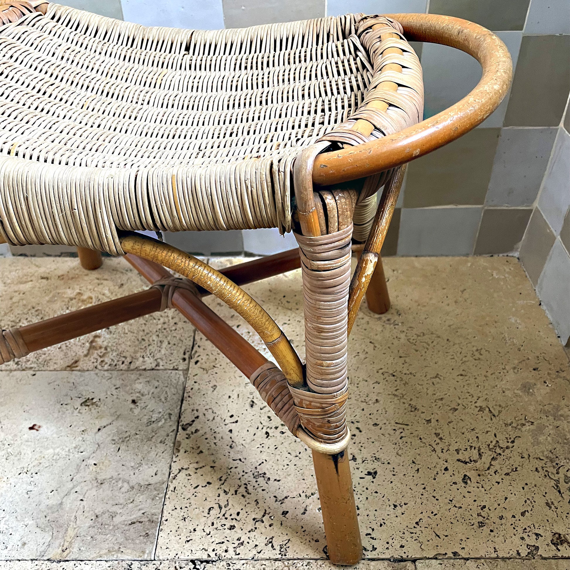 Vintage mid-century bamboo stool with curved seat. There are some marks and signs of use, but this piece is in overall great vintage condition.
