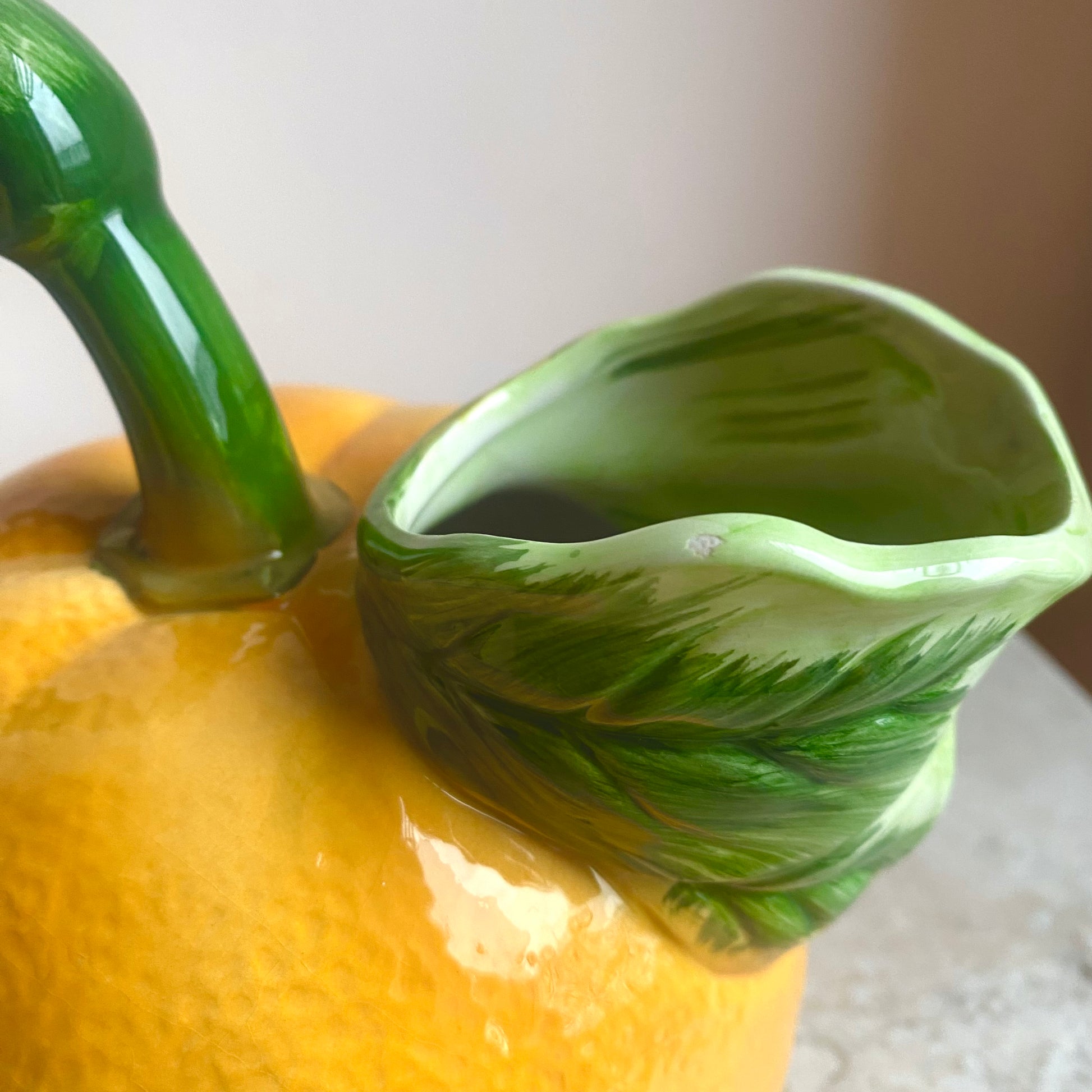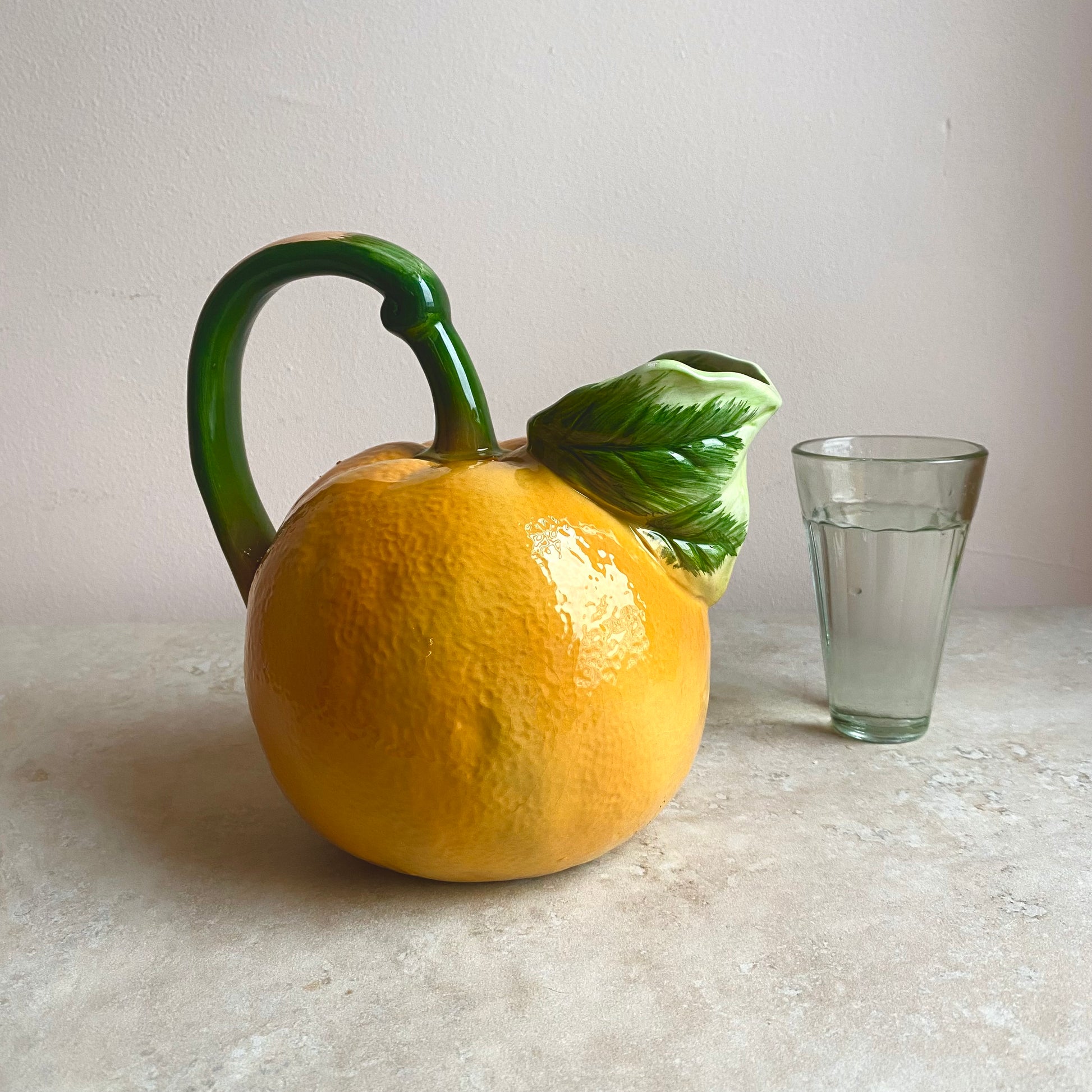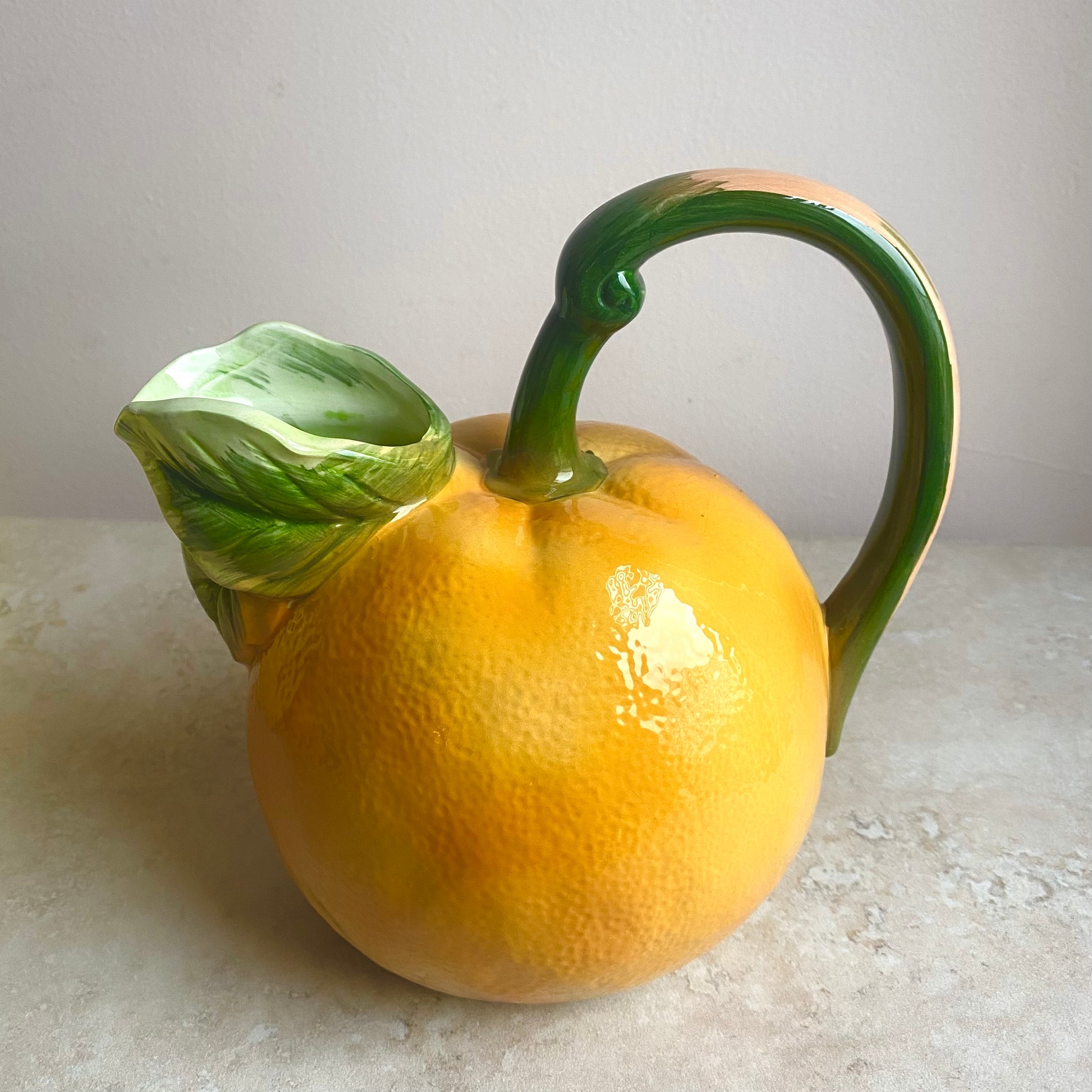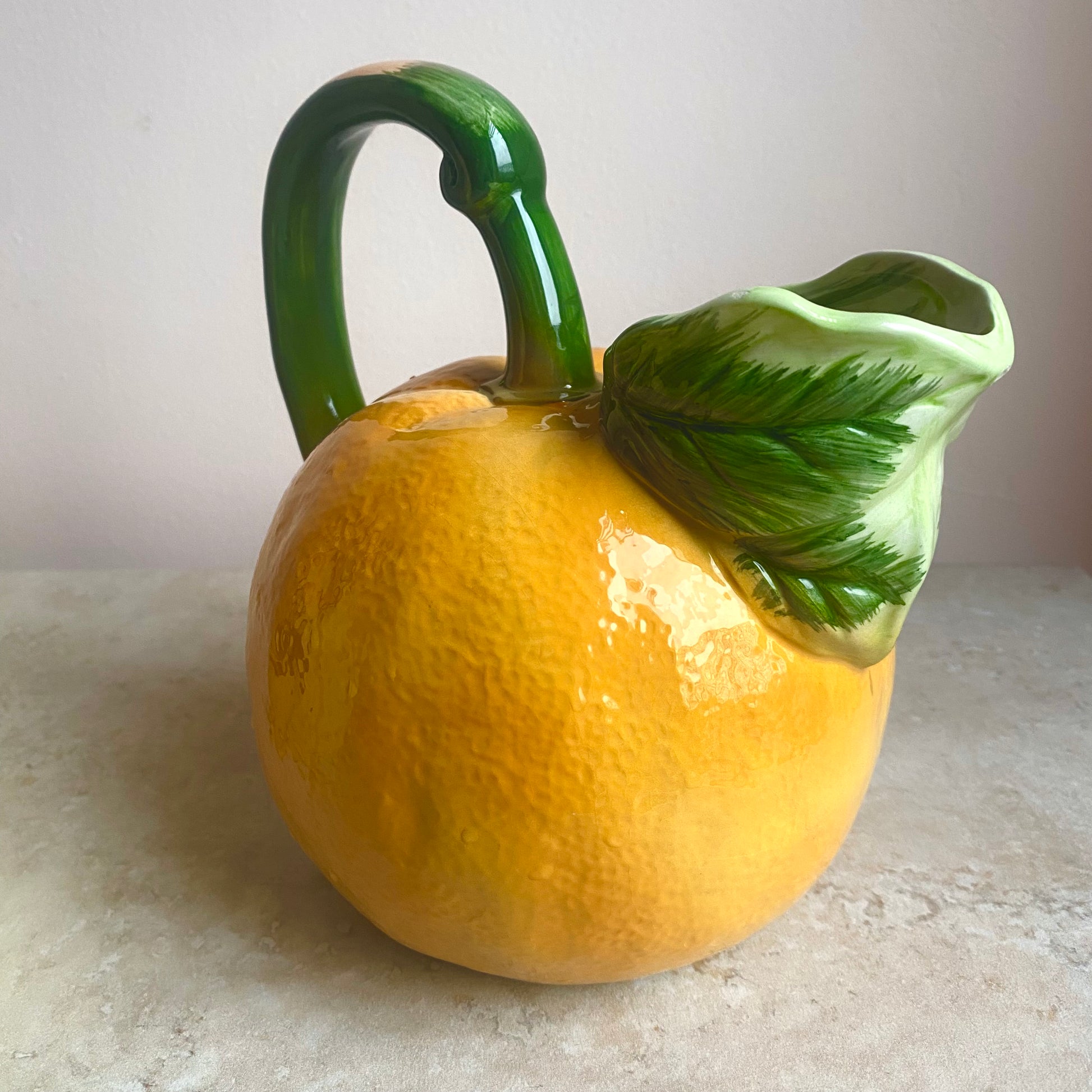 Vintage ceramic jug featuring a citrus fruit design, dating back to the 1980s.
