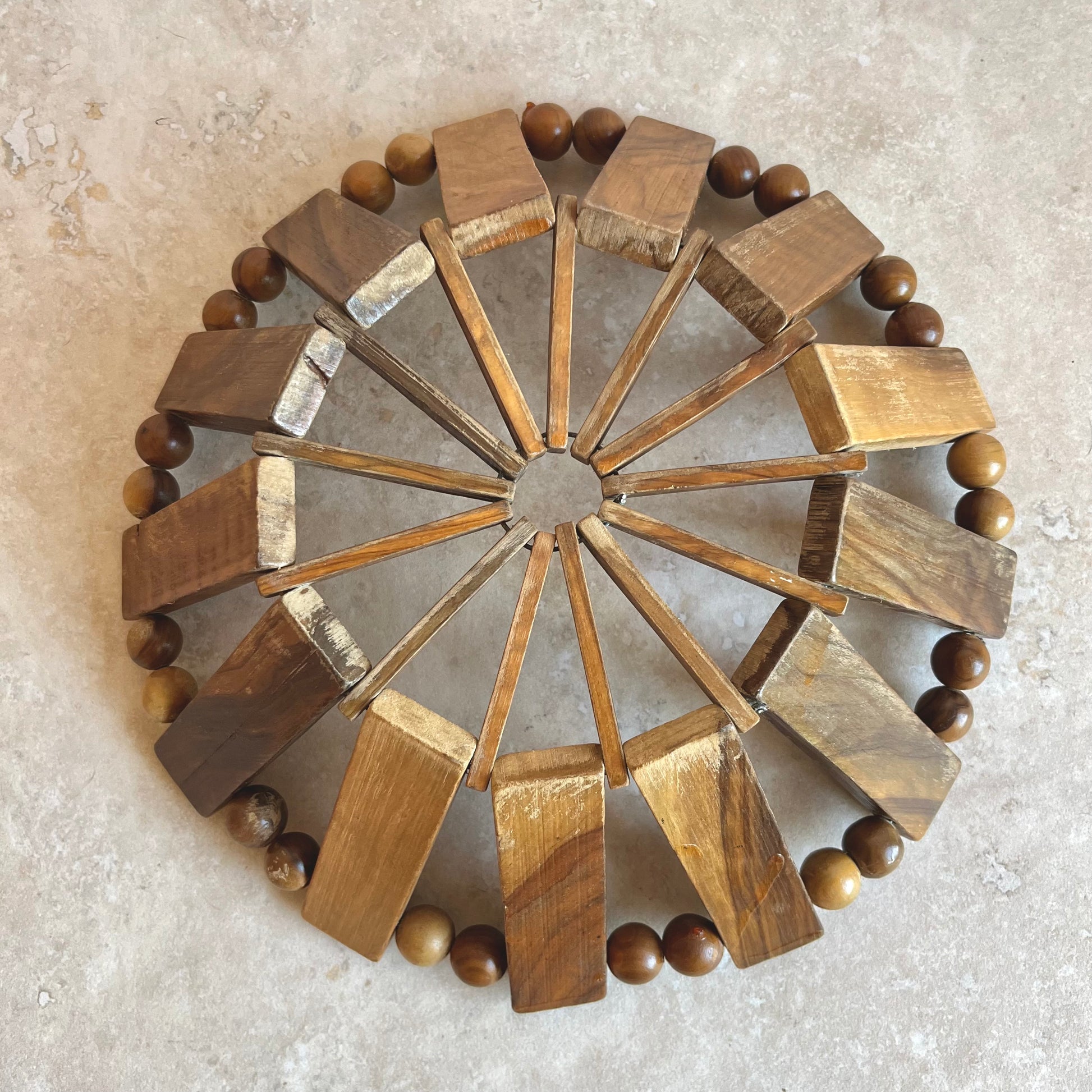 A vintage beaded olive wood bowl with rich natural grain and a warm patina, dating to the 1970s.