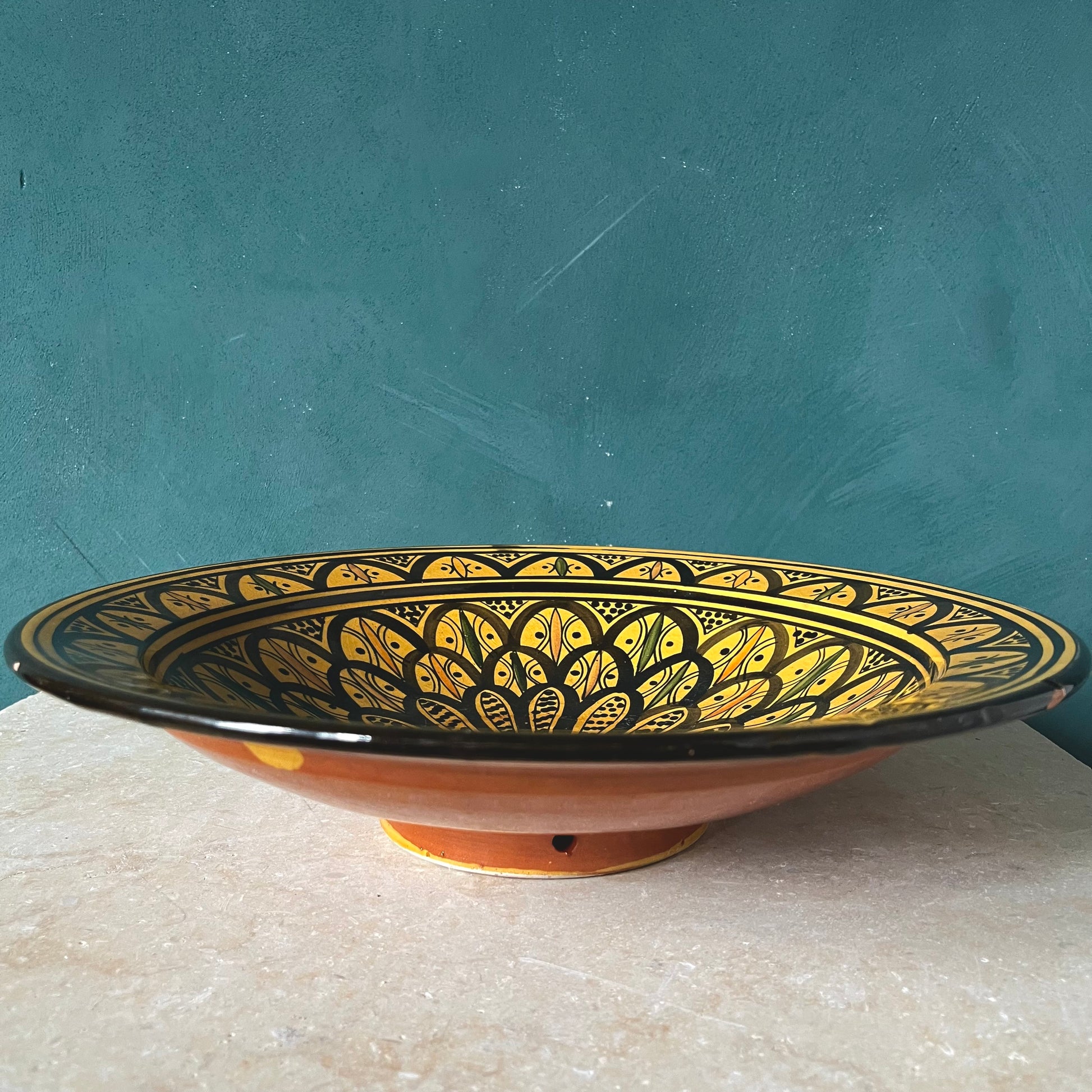 Vintage Moroccan Large Hand-Painted Yellow Ceramic Bowl