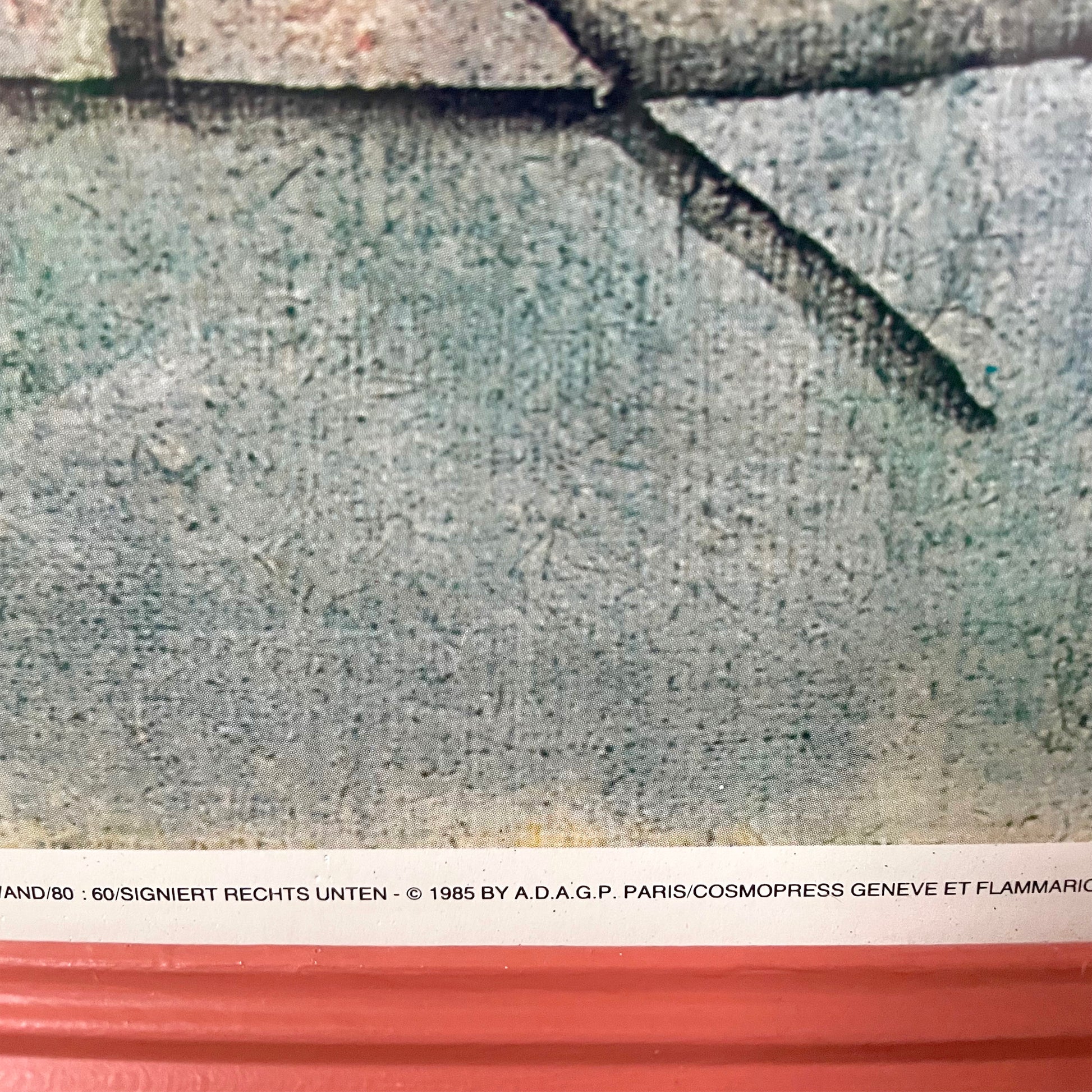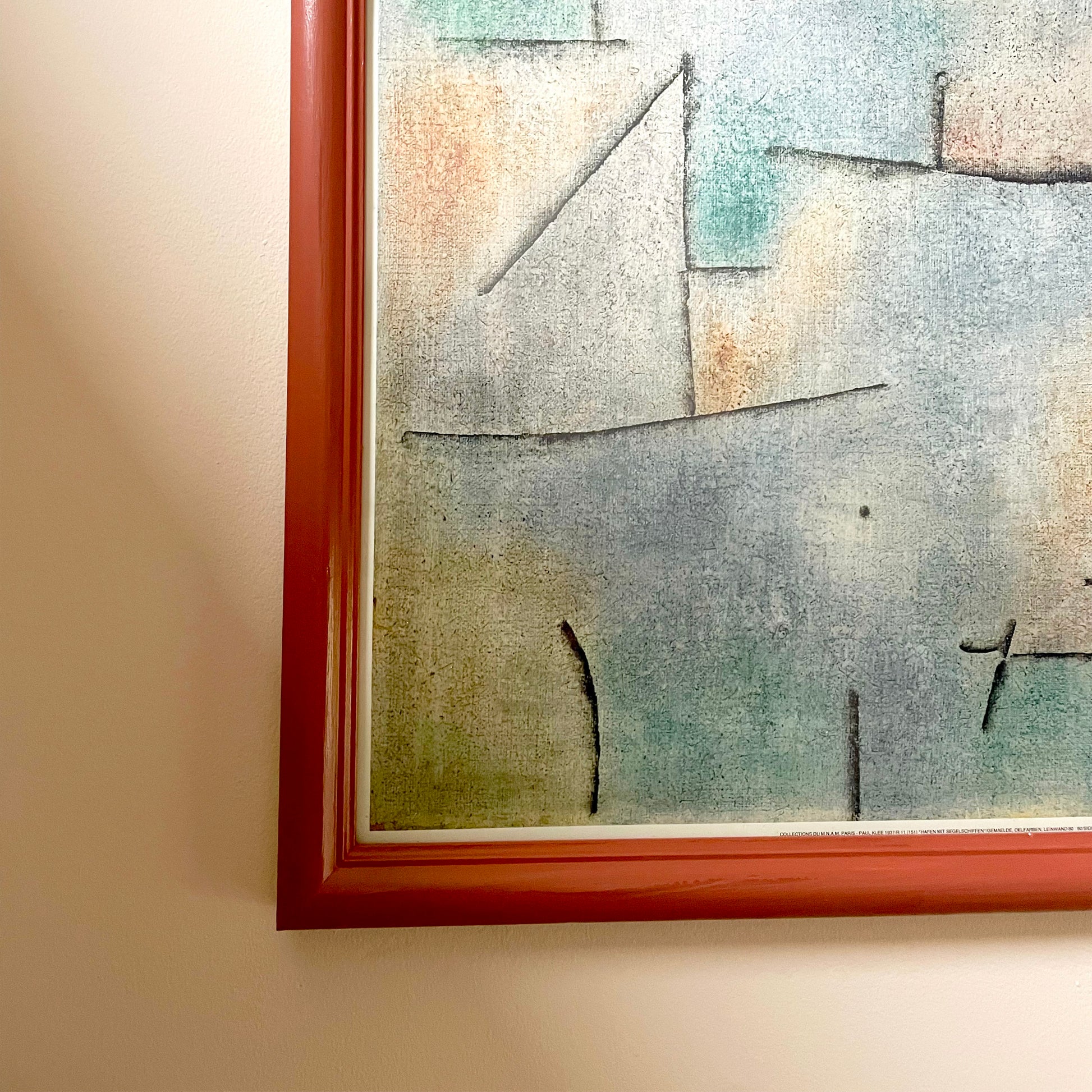 The poster is printed on a thick 3 mm card and is from the 1980s. The frame is a vintage wooden picture frame painted in Picture Gallery Red by Farrow and Ball.