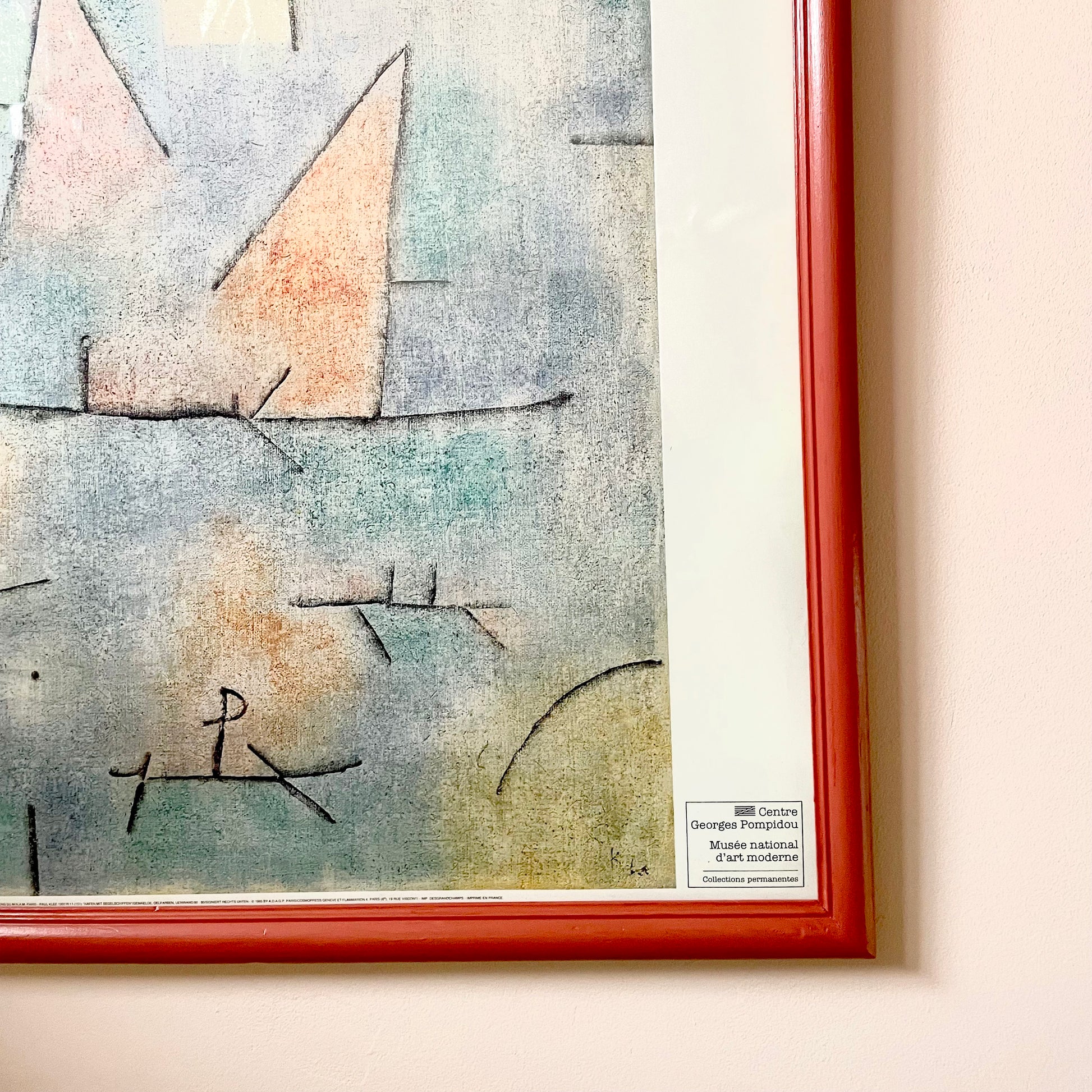Vintage Paul Klee poster featuring his piece Port et voiliers (Hafen mit Segelschiffen) for the permanent collection of the Musee National d'Arte Moderne at the Centre Georges Pompidou.