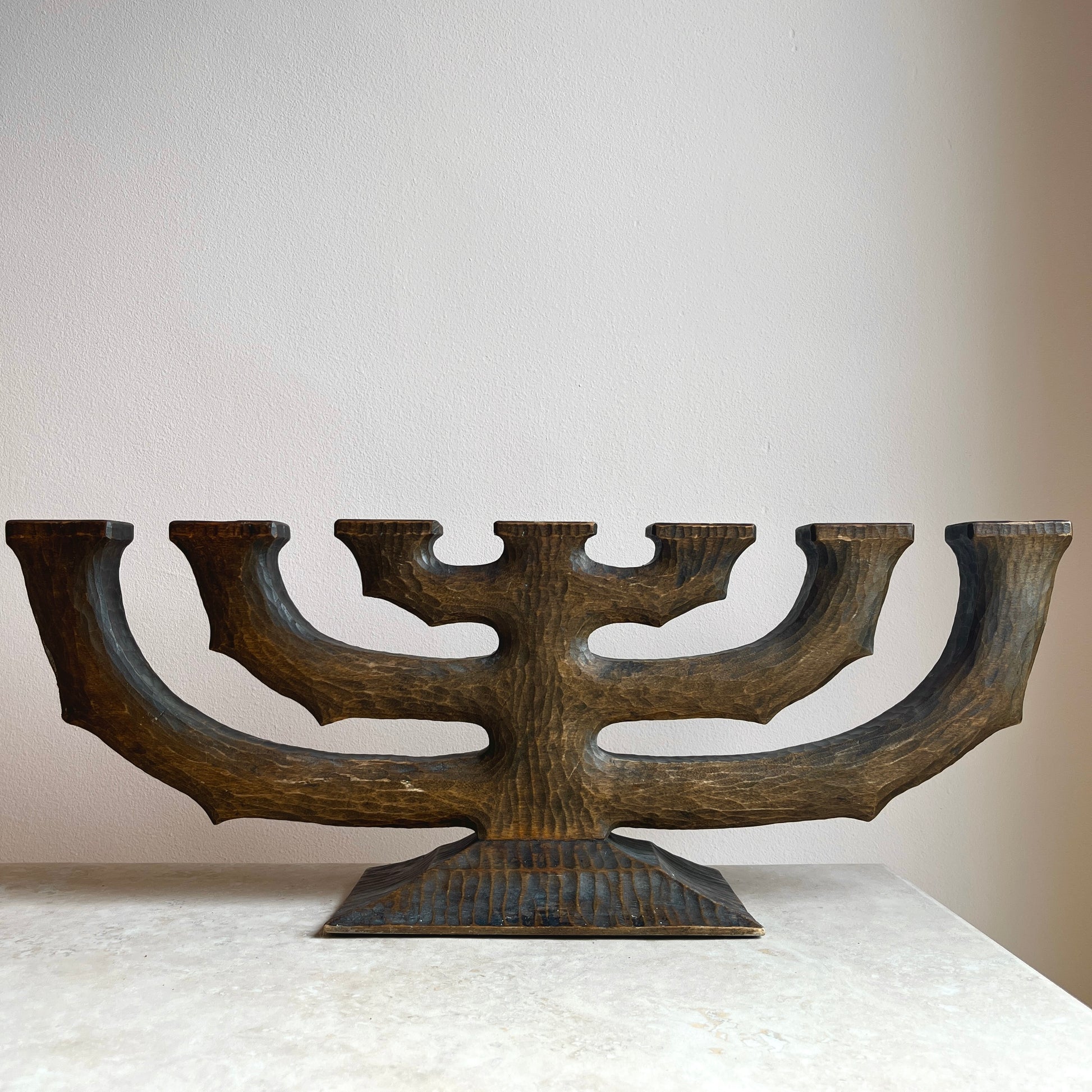 This rustic candelabra showcases the beauty of aged wood. The piece has got some wear around the candle holes, consistent with age and use, but overall, it remains in fabulous vintage condition.